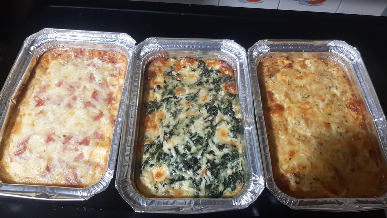 Ingredientes: Queso muzzarella, queso paraguay, jamon, huevo, crema de leche, queso sardo