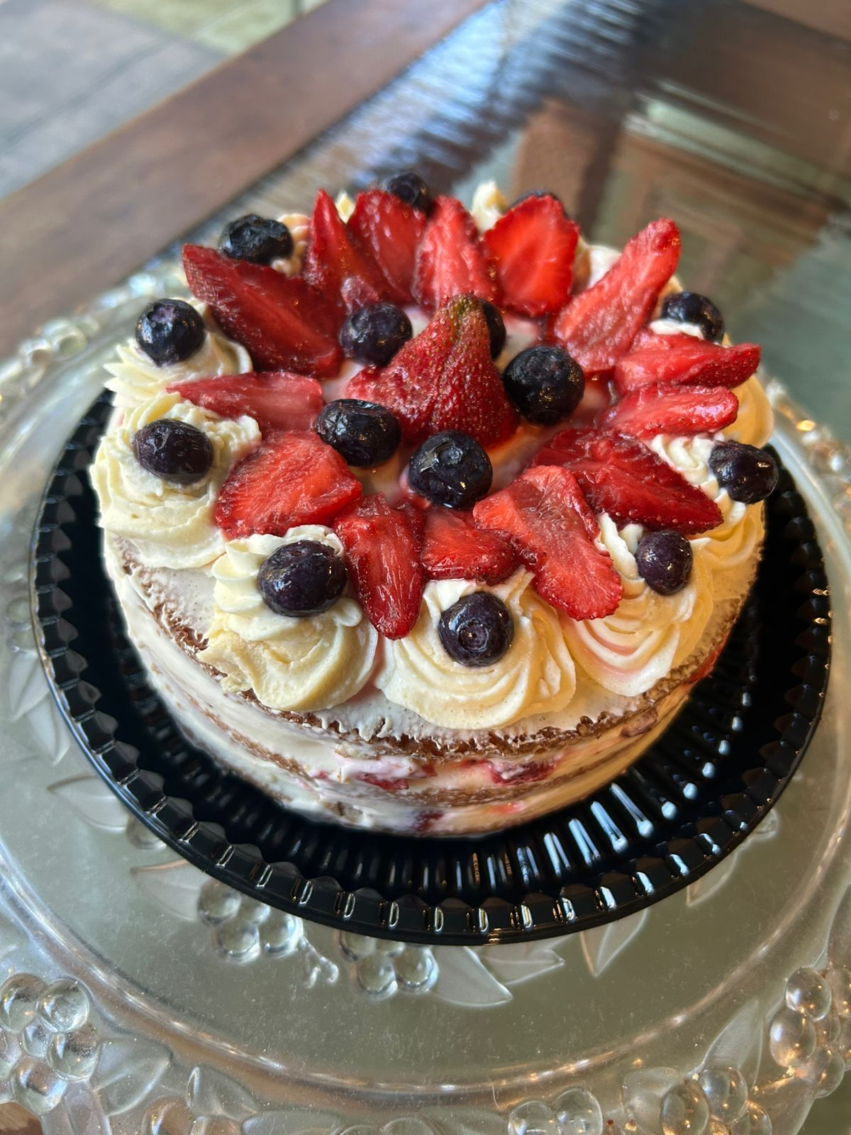 Ingredientes: Harina de almendras, crema de leche, stevia, frutilla, arandanos